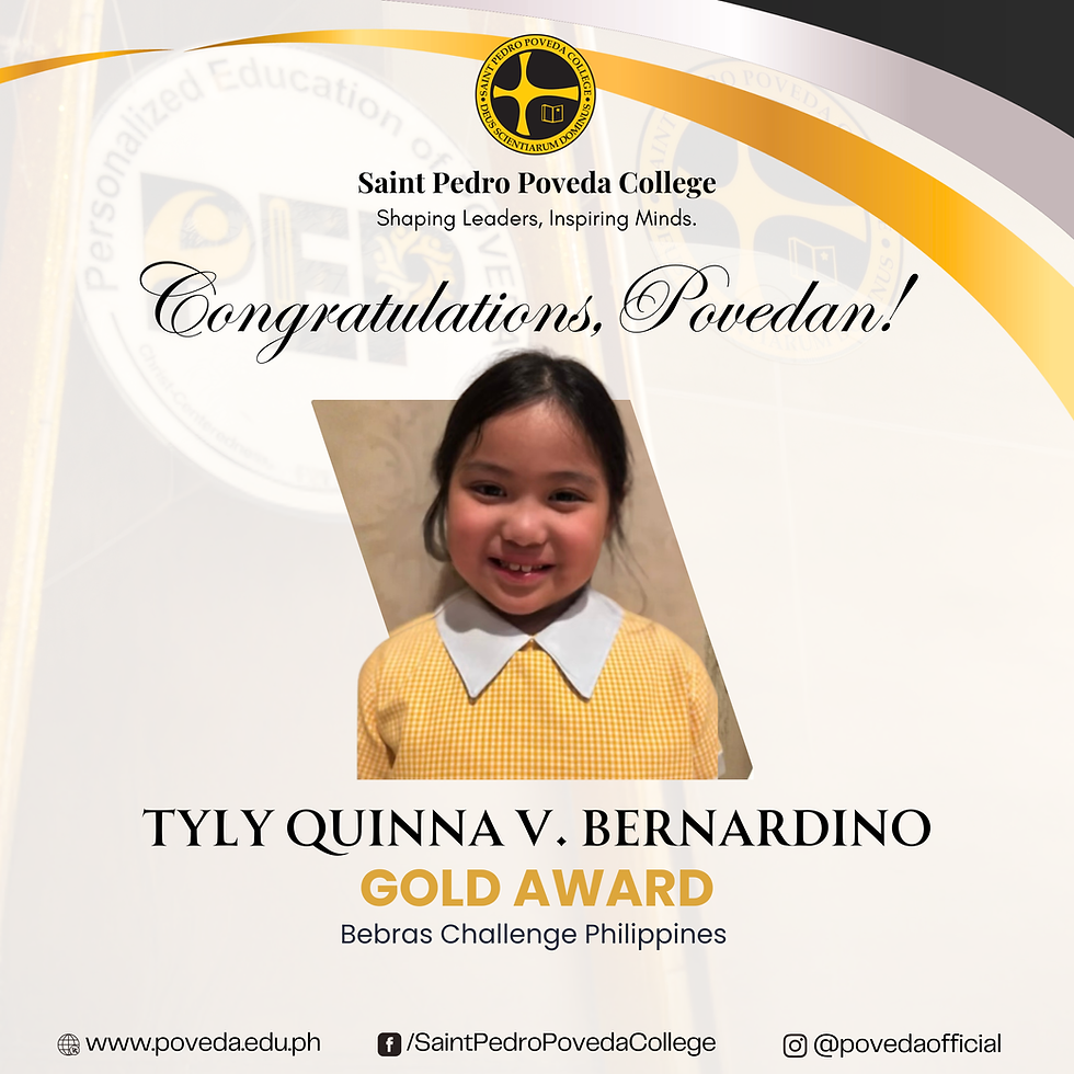 We are proud to share that Tyly Quinna V. Bernardino, a Grade 2 student, was awarded Gold at the Bebras Challenge Philippines, held online last February 8, 2026.