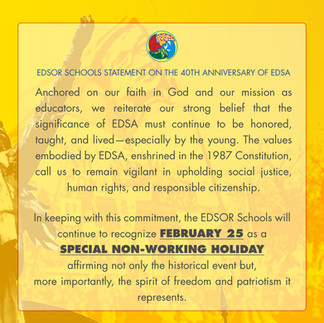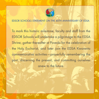As we commemorate the 40th Anniversary of the EDSA People Power Revolution, we reaffirm our commitment as Catholic educators to form young men and women who uphold democracy, human dignity, and responsible citizenship.